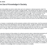 The Use of Knowledge in Society, by Friedrich Hayek, is arguably one of the most important economic papers to have ever been written.