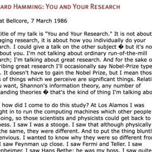 Richard Hamming: You and Your Research