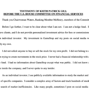 Testimony of Keith Patrick Gill Before The U.S. House Committee On Financial Service