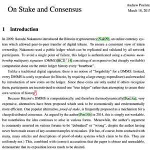 In 2009, Satoshi Nakamoto introduced the Bitcoin cryptocurrency[Nak09], an online currency system which allowed peer-to-peer transfer of digital tokens. To ensure a consistent view...